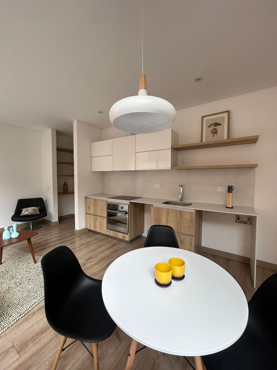 Este encantador apartamento se encuentra en el Barrio El Refugio en la Transversal 5 en una edificación que ofrece comodidad y seguridad en un entorno residencial de alta calidad. Con un área de 50 metros cuadrados (estrato 6) , este apartamento es ideal para personas que buscan un lugar cómodo y bien equipado. Características destacadas del apartamento: Distribución Espaciosa: El apartamento ofrece un diseño espacioso amplio y bien distribuido. Cuenta con zona social, integrada al área de cocina, sala, comedor, pequeño espacio para un escritorio y una habitación con baño privado, lo que lo convierte en una opción perfecta para solteros, parejas o profesionales que buscan comodidad y privacidad. Cocina Moderna: La cocina está equipada con una estufa por inducción, horno funcional y campana extractora, lo que facilita la preparación de comidas y garantiza un ambiente de cocina limpio y seguro. Estacionamiento Cubierto y Depósito: El apartamento incluye un parqueadero cubierto, lo que es esencial en una zona urbana donde el estacionamiento puede ser un desafío. Además ofrece un espacio de almacenamiento adicional en forma de depósito, lo que facilita la organización . Zonas Sociales: El edificio ofrece una amplia gama de zonas sociales para el disfrute de los residentes. Incluye un espacio de coworking que es perfecto para aquellos que trabajan desde casa o necesitan un lugar tranquilo para estudiar. También hay una terraza con zona de barbacoa (BBQ) y salón comunal donde se pueden organizar reuniones y eventos al aire libre. Las zonas sociales para invitados son ideales para recibir visitas y pasar tiempo con amigos y familiares en un entorno agradable. Este apartamento es una excelente elección para aquellos que buscan una residencia moderna, segura y bien equipada en el Barrio El Refugio. La combinación de comodidades en el interior del apartamento y las instalaciones del edificio hacen que sea un lugar ideal para vivir y disfrutar de la vida en la ciudad.