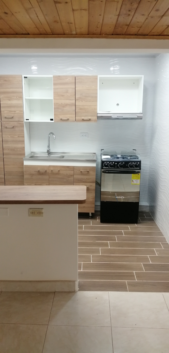 Cómodo y acogedor apartamento 4to piso, consta de sala comedor, tres habitaciones con closet dos baños con divisiones en vidrio cocina integral abierta y patio de ropas independiente, techos en madera pisos en tableta exelente estado.
