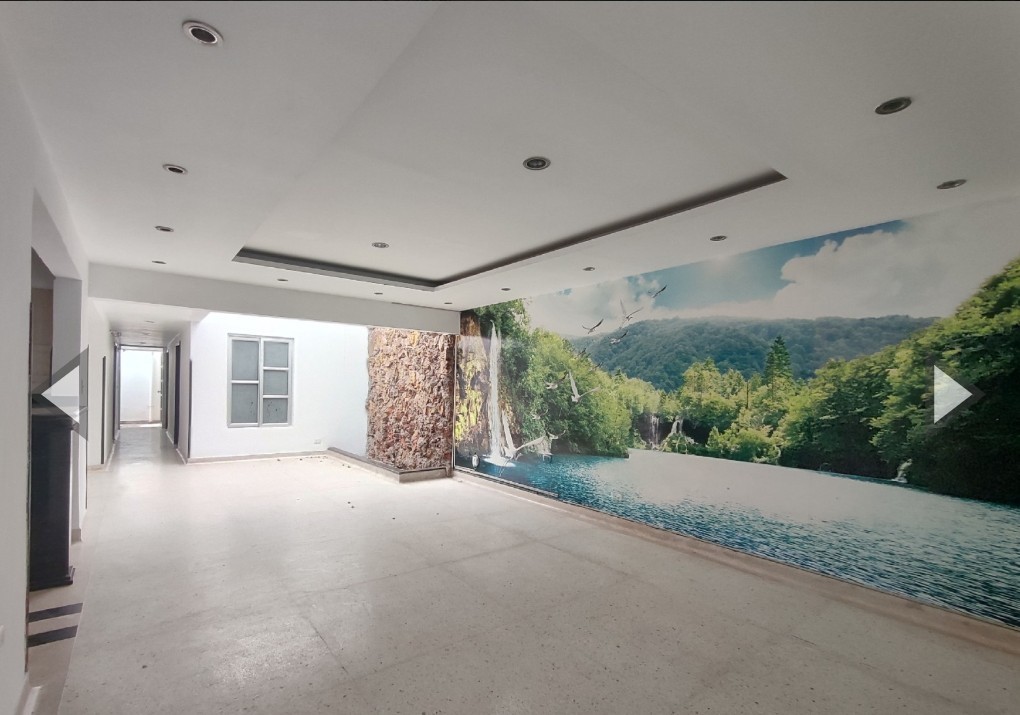 Casa de un piso remodelada, 3 habitaciones y cada una con baño, otro baño auxiliar , estudio, sala comedor ventilada natural con espacio abierto y fuente